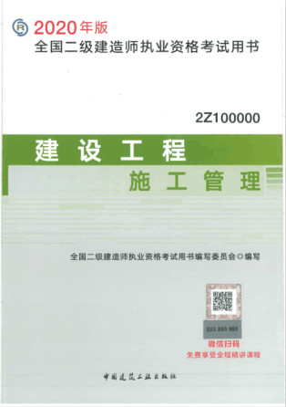 报名时间2020年二级建造师考试《建设工程施工管理》教材已经发布,教材封面如下:(点击查看各科目教材简介汇总>>)