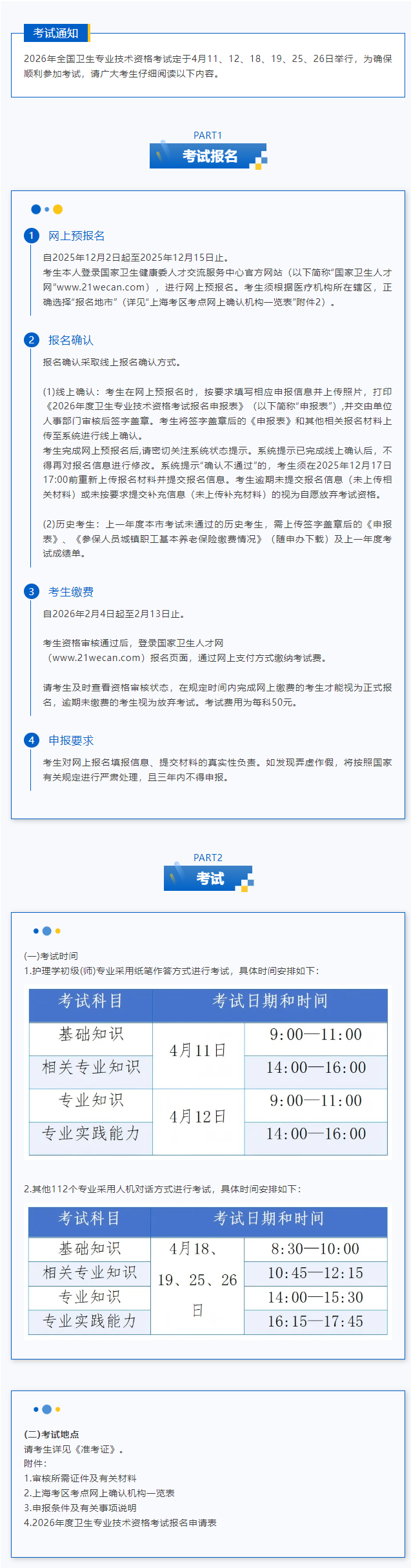 关于做好上海市2026年全国卫生专业技术资格考试通知