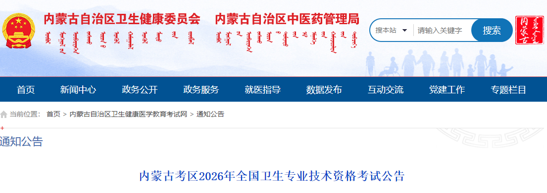 关于做好内蒙古考区2026年全国卫生专业技术资格考试公告
