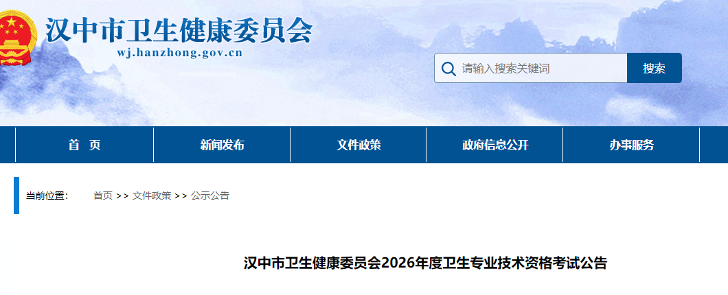 关于做好陕西汉中市卫生健康委员会2026年度卫生专业技术资格考试公告