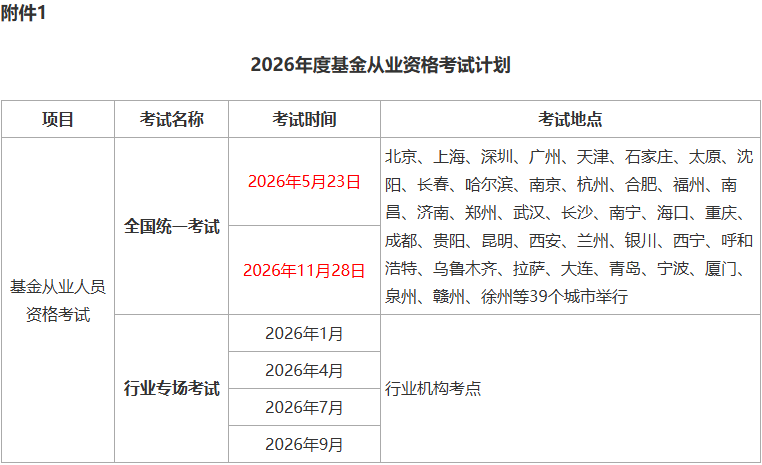 考试计划公布!2026年基金从业考试举行2次统考,4次行业专场考试