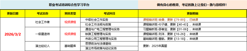 职业考试培训综合性学习平台,做有良心的教育,考证路上让我们一路与您相伴!