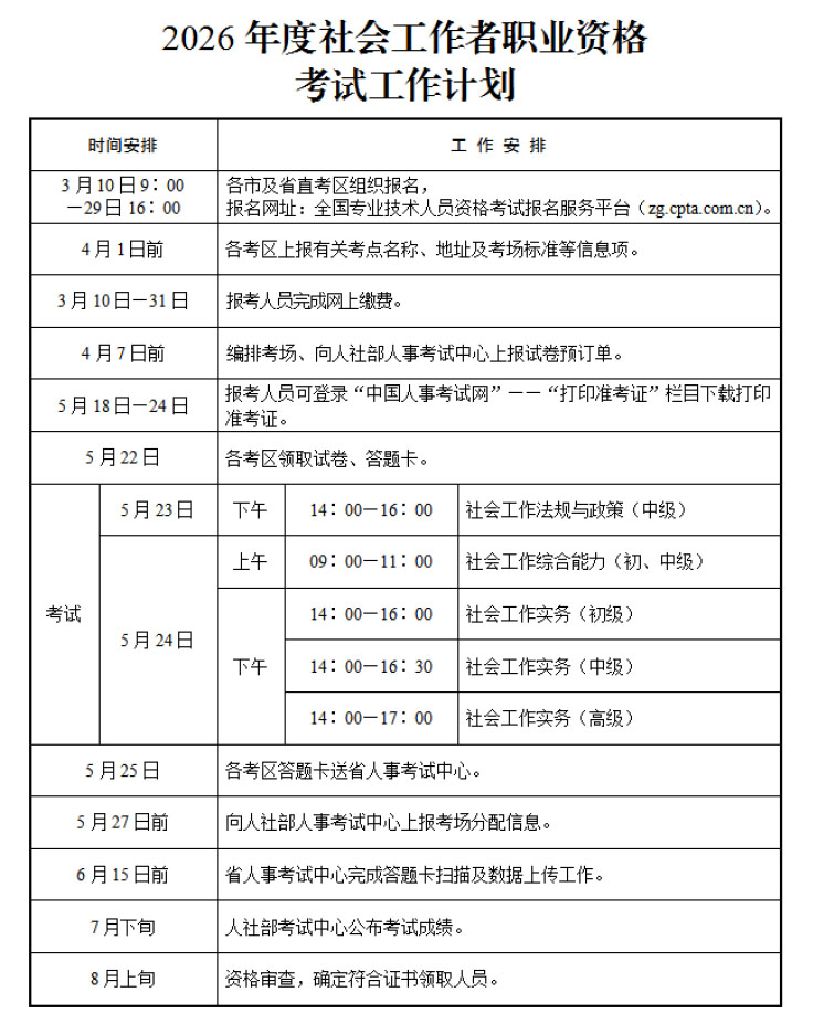 2026年度社会工作者职业资格考试工作计划时间安排