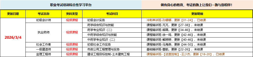 职业考试培训综合性学习平台,做有良心的教育,考证路上让我们一路与您相伴!