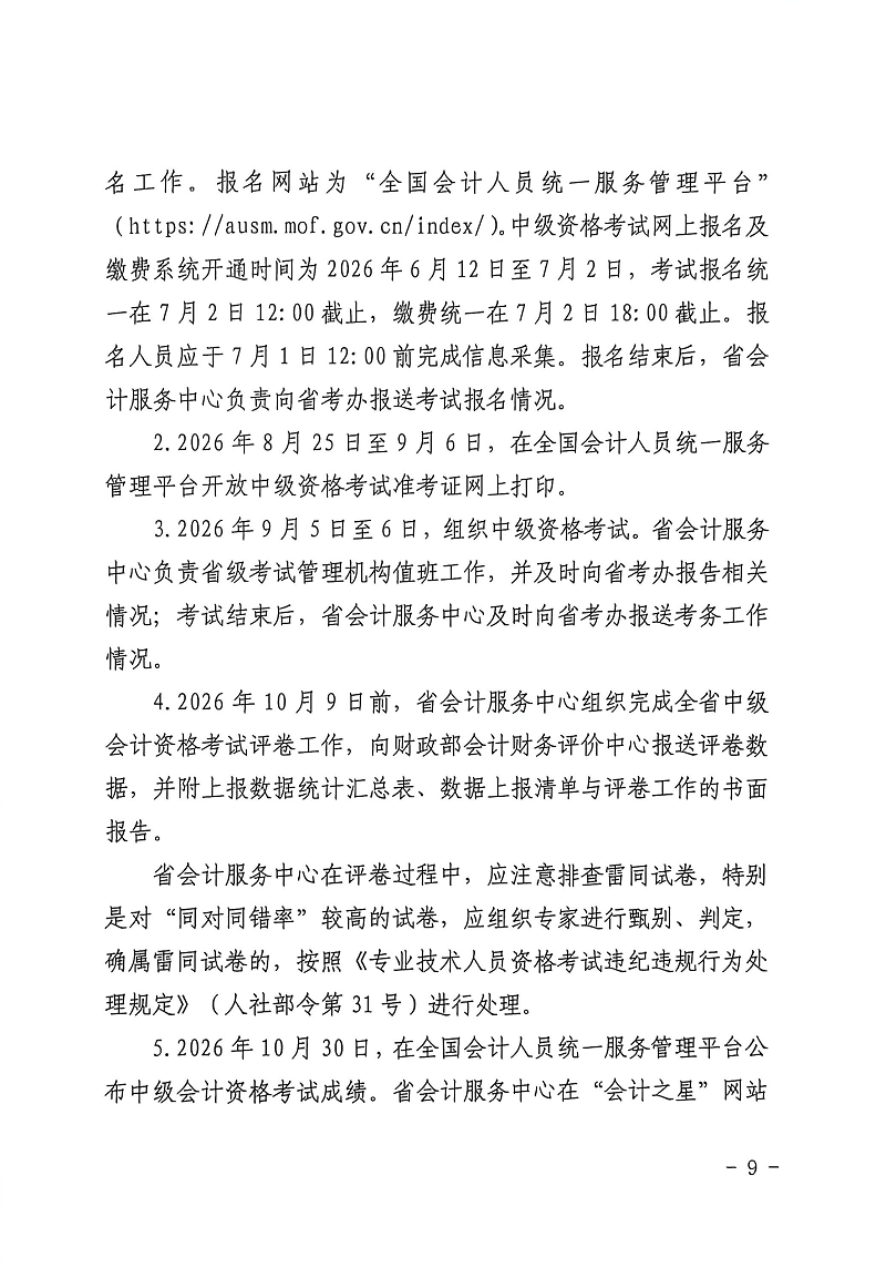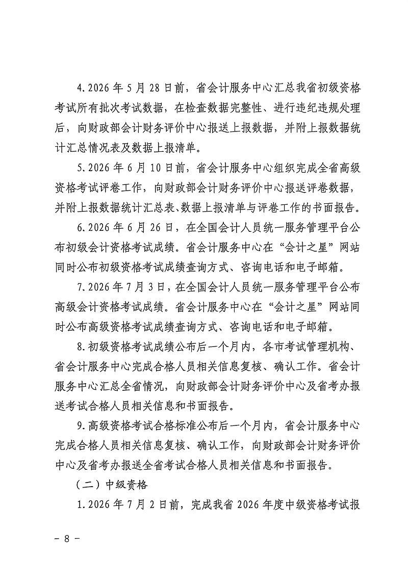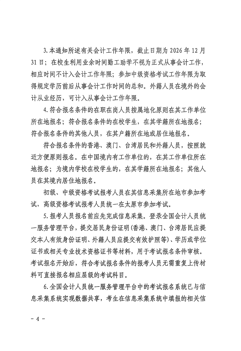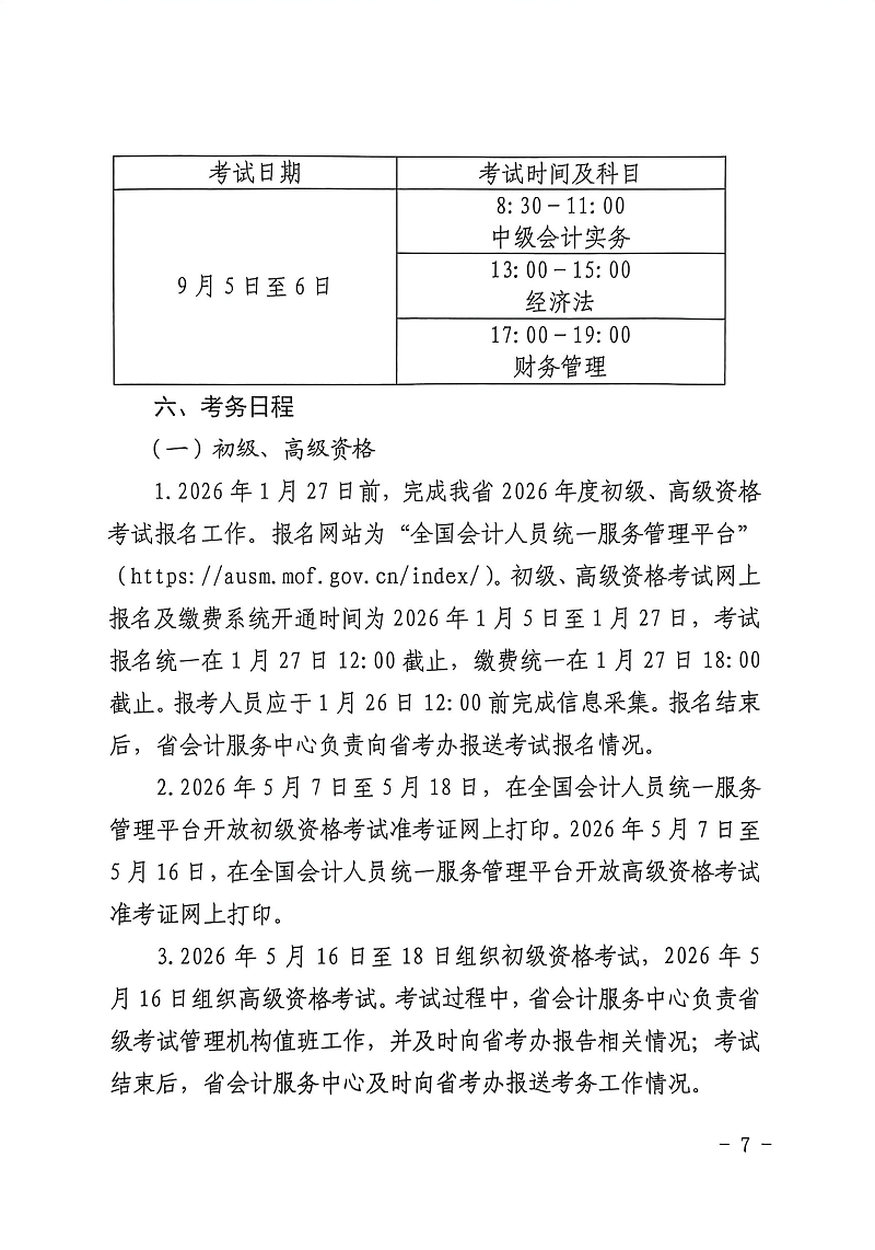 2026年山西中级会计师考试报名时间为6月12日至7月2日12:00;缴费时间7月2日18:00截止;信息采集7月1日12:00前完成。准考证打印时间为8月25日至9月6日;成绩查询时间10月30日。