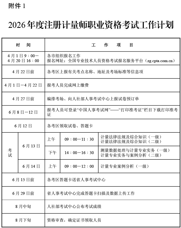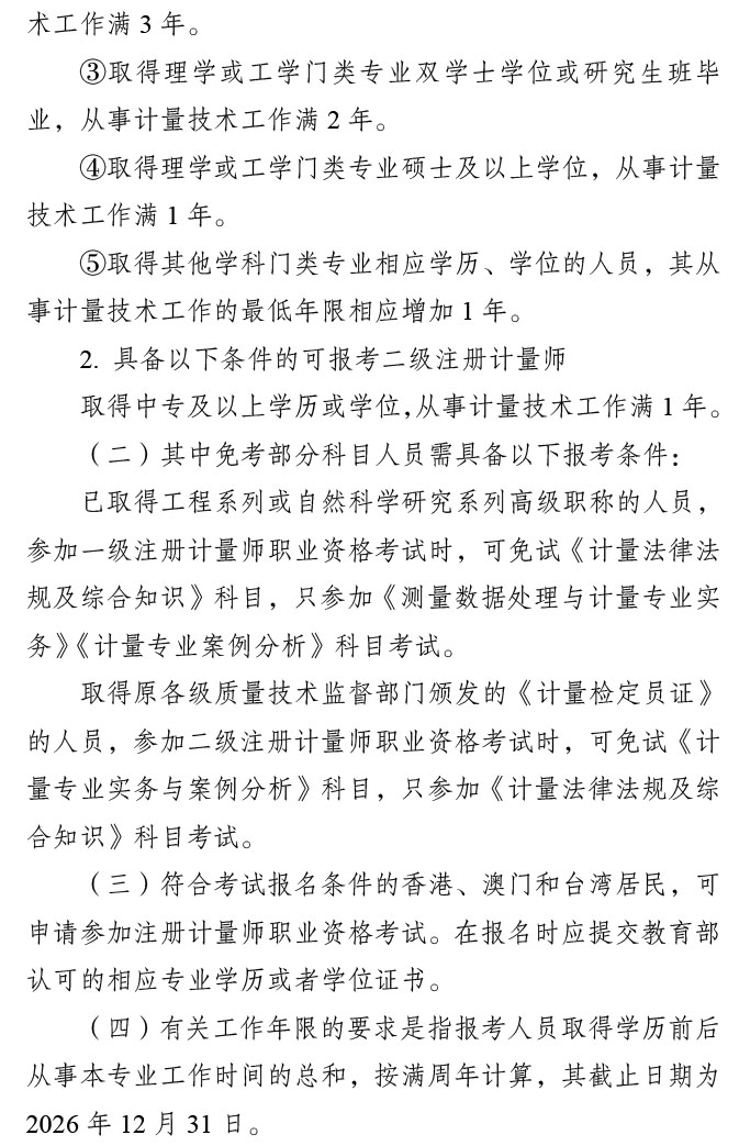 2026年全国注册计量师考试时间定于6月13、14日