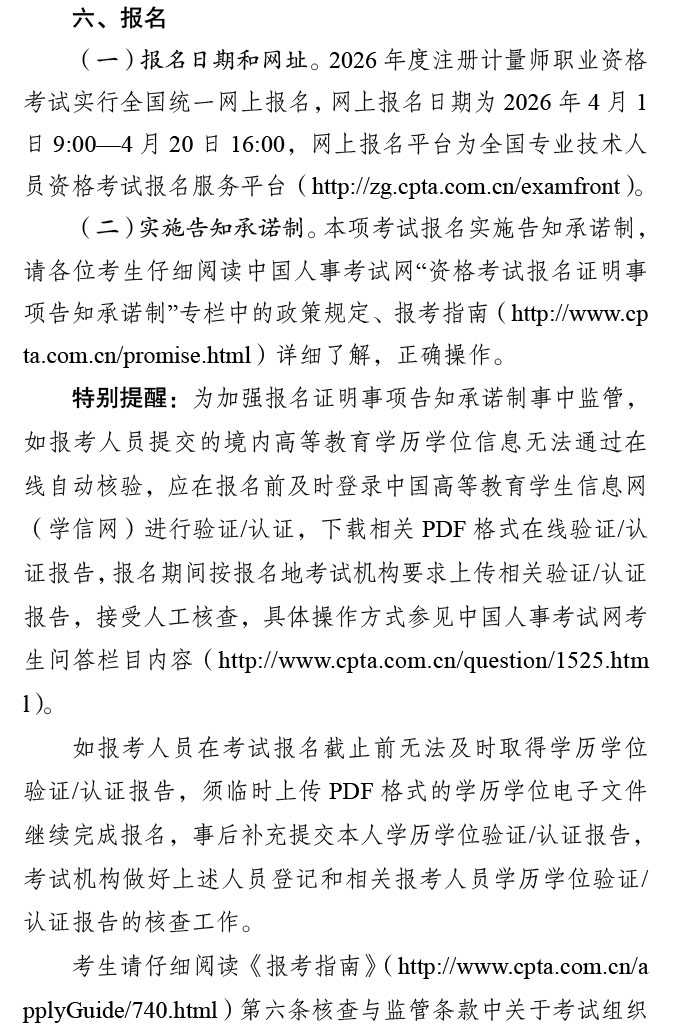 贵州2026年注册计量师考试网上报名时间为4月9日9:00至16日17:00