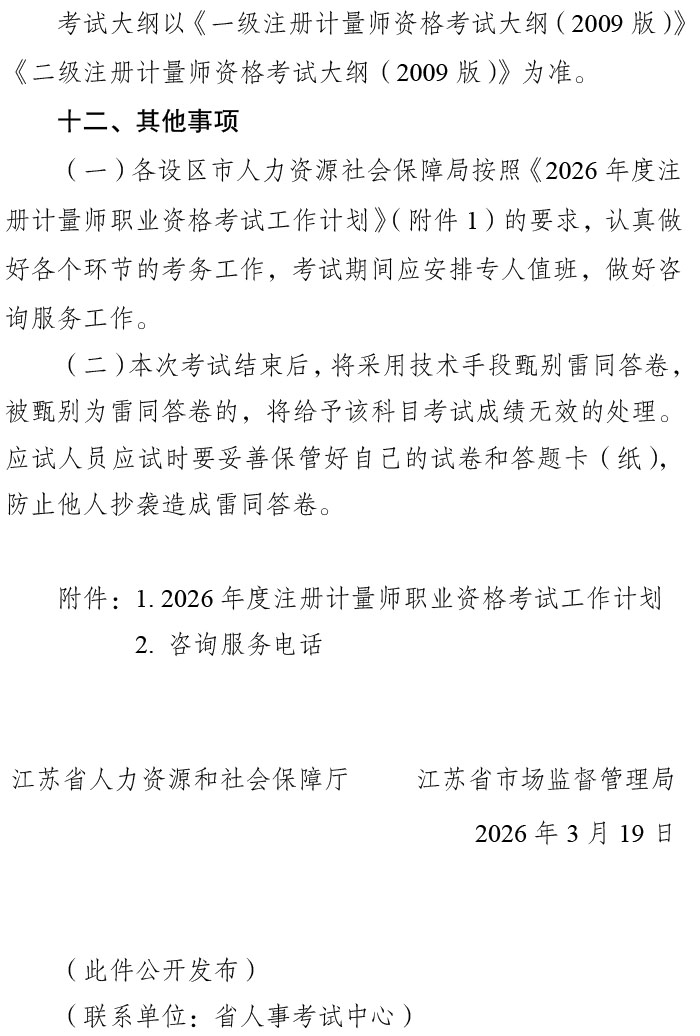 2026年江苏注册计量师考试报名时间为4月1日9:00-4月20日16:00