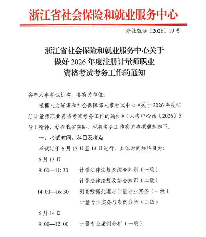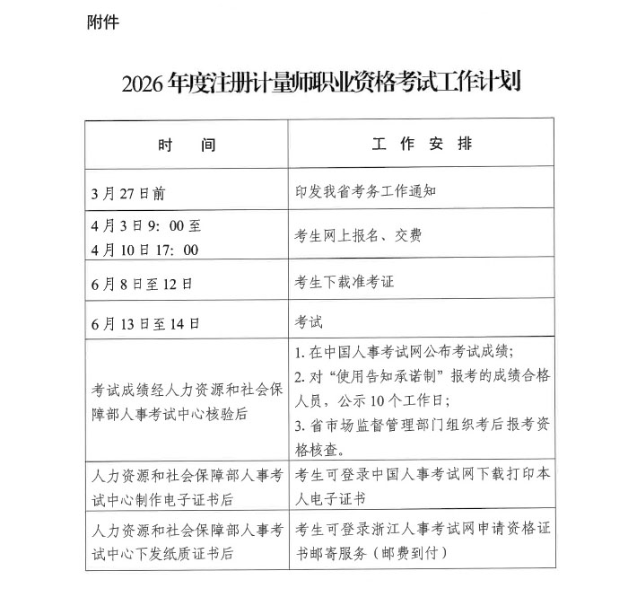 关于做好浙江2026年度注册计量师职业资格考试报名工作的通知