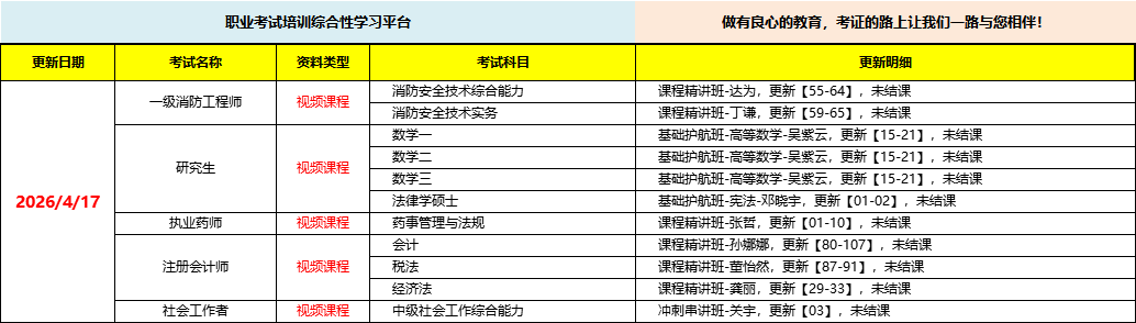 职业考试培训综合性学习平台,做有良心的教育,考证路上让我们一路与您相伴!