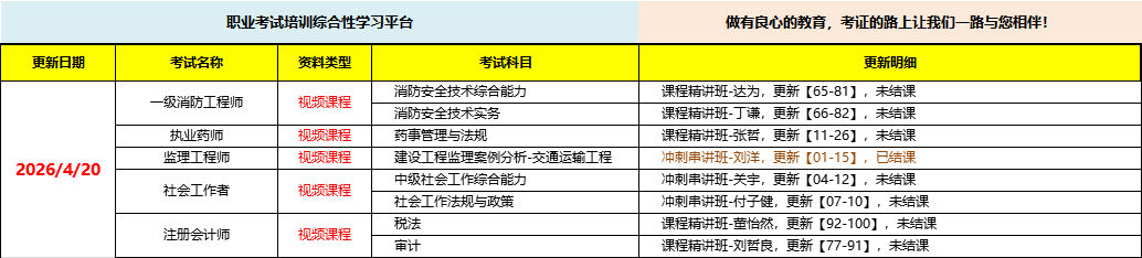职业考试培训综合性学习平台,做有良心的教育,考证路上让我们一路与您相伴!