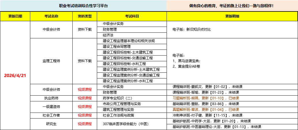 职业考试培训综合性学习平台,做有良心的教育,考证路上让我们一路与您相伴!