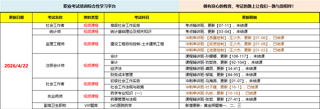 职业考试培训综合性学习平台,做有良心的教育,考证路上让我们一路与您相伴!