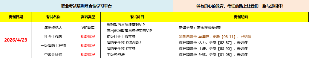 职业考试培训综合性学习平台,做有良心的教育,考证路上让我们一路与您相伴!
